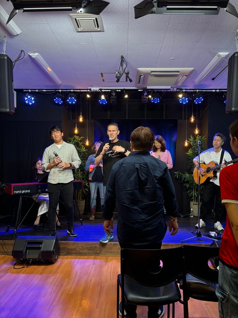 Visiting Church of the City and being prayed for by staff